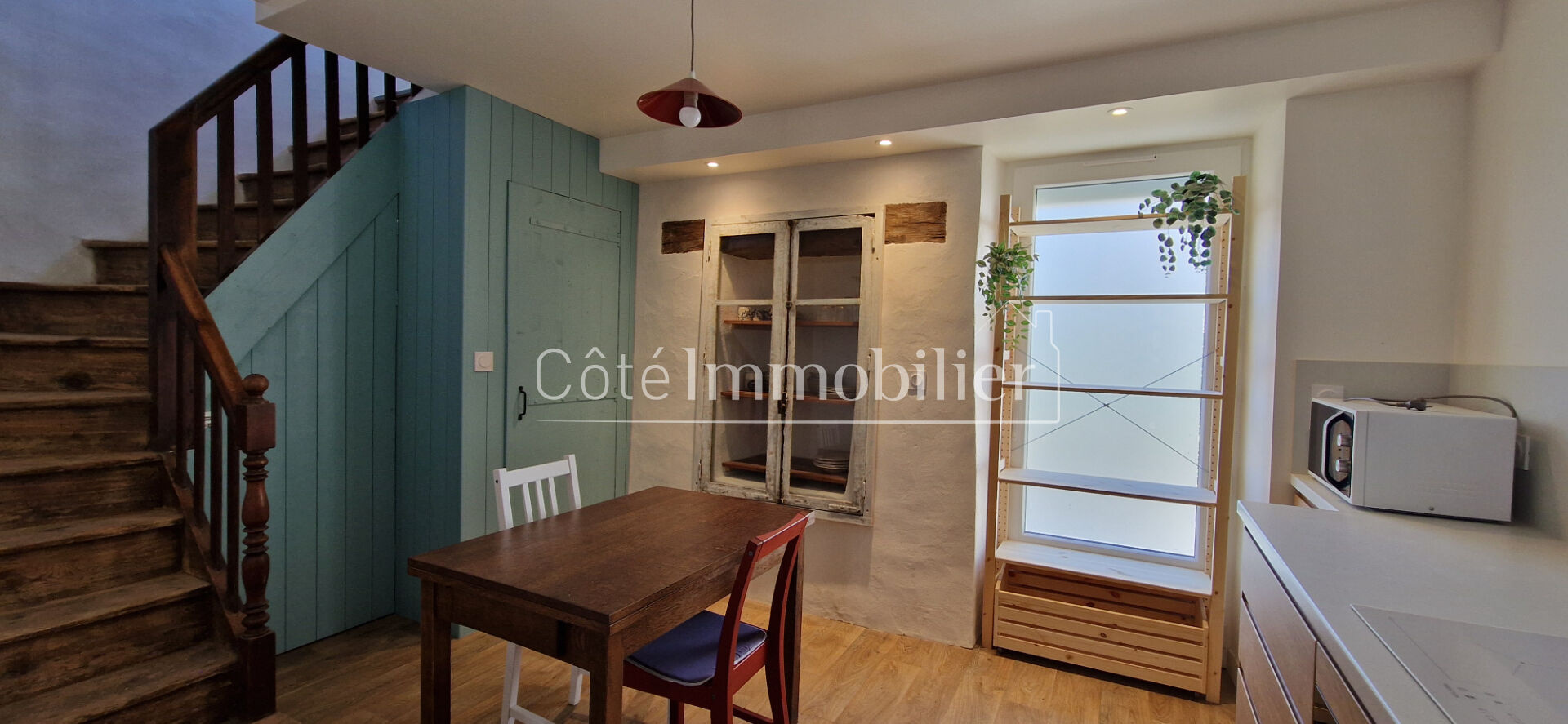 COTE IMMOBILIER - Agence Goudy Tharon plageEn centre ville, maison de ville rénovée et meublée comprenant une entrée sur salon, cuisine, WC avec lave-main, A l'étage deux chambres et une salle d'eau avec double vasque, douche et WC .Disponible de suite.Loyer 750 €Honoraires de location 525 € dont 165 € pour l'état des lieux.Ressources minimum exigées 2 250 €/mois.www.cote-immobilier.comCOTE IMMOBILIER AGENCE GOUDY THARON PLAGE10 AVENUE ERNEST CHEVRIER 44 730 THARON-PLAGE02 28 53 61 83