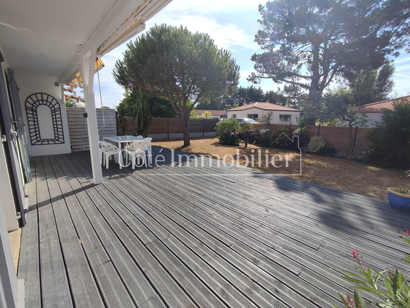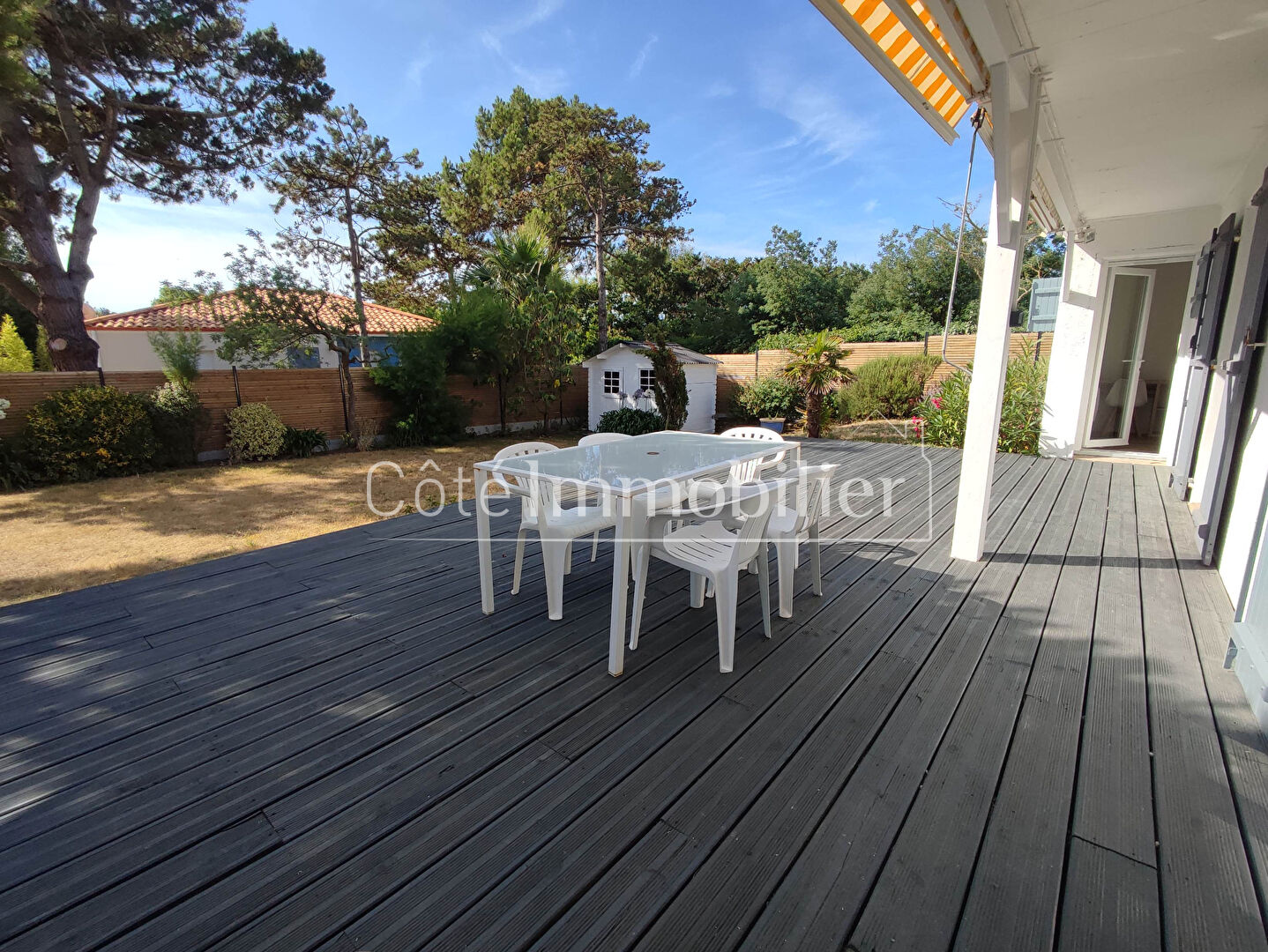 COTE IMMOBILIER - Agence Goudy THARON-PLAGEA LA PLAINE SUR MER, très proche mer, Maison de plain-pied meublée offrant une entrée sur pièce de vie avec cuisine américaine aménagée et équipée ouvrant sur une terrasse bois orientée Sud/Est, 3 chambres, un bureau, une salle de bains et un WC indépendantsUn chalet bois complète ce bien édifié sur un terrain clos et arboré de 654 m² environMandat en délégation www.cote-immobilier.comCOTE IMMOBILIER AGENCE GOUDY THARON PLAGE10 AVENUE ERNEST CHEVRIER 44 730 THARON-PLAGE02 28 53 61 83 (4.00 % d'honoraires TTC à la charge de l'acquéreur.) Murielle LANDUREIN (EI) Agent Commercial - Numéro RSAC : 803035039 - Rennes.