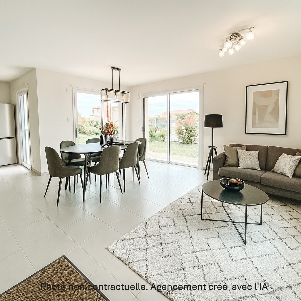 Coté Immobilier La Bernerie MAISON RECENTE, composée d'une pièce de vie lumineuse avec cuisine ouverte, 3 CHAMBRES, salle d'eau avec wc (Normes PMR), wc séparés. GARAGE. Belle parcelle de 580 m² env. Ses atouts : encore sous garanties décennales, PLAIN-PIED, proche plage (500 m)(Photo intérieur avec modèle d'aménagement créé par l'IA) (4.49 % d'honoraires TTC à la charge de l'acquéreur.) Anne DUBOIS-DAMOUR (EI) Agent Commercial - Numéro RSAC : 2025AC0056 - SAINT NAZAIRE.
