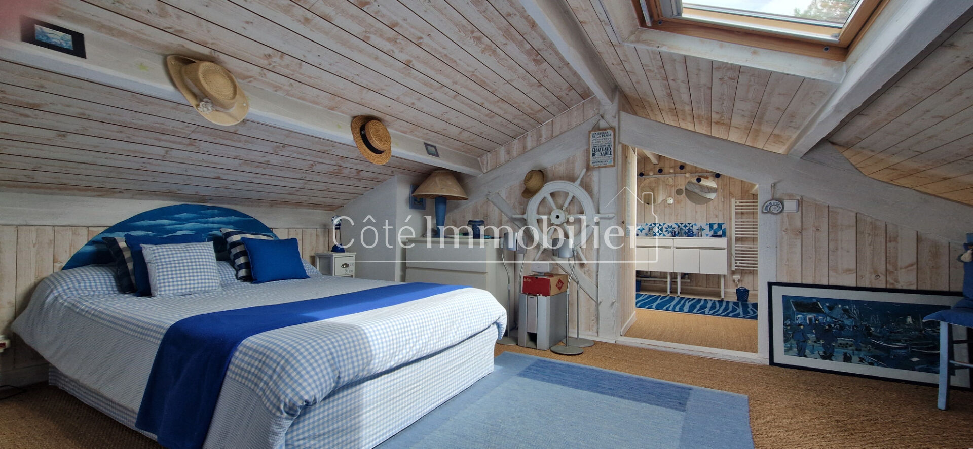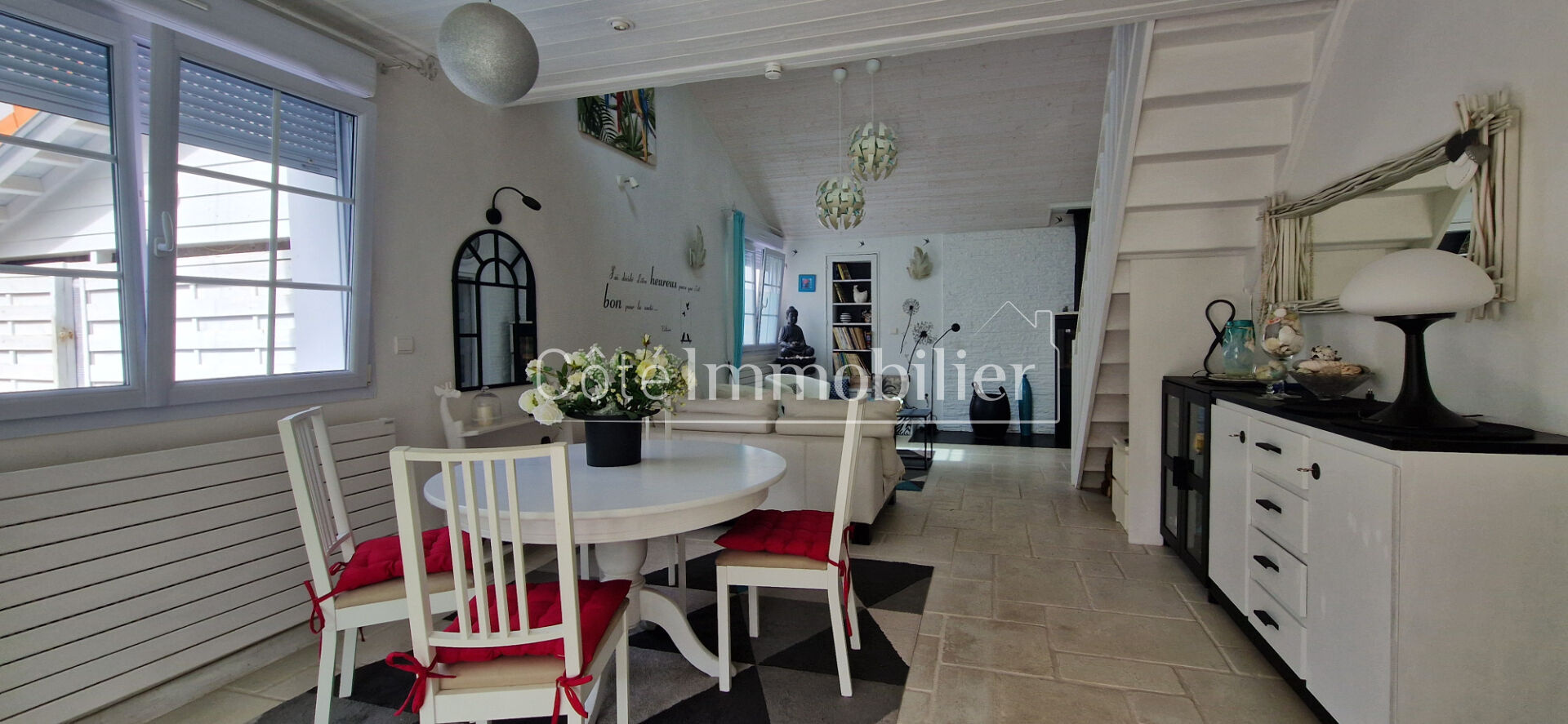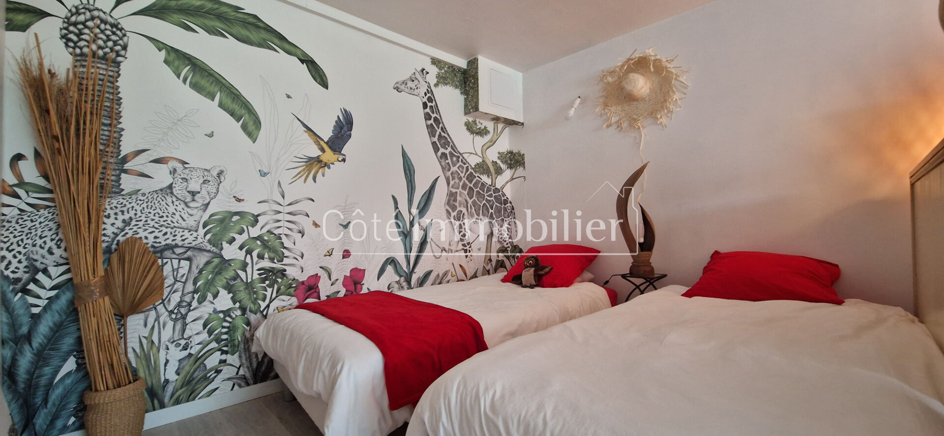 COTE IMMOBILIER - Agence Goudy Tharon plageMaison rénovée dans un cadre verdoyant à 350 m de la plageÀ seulement 350 mètres à pied de la plage, nichée dans un écrin de verdure, cette belle maison des années 70 entièrement rénovée allie confort moderne et ambiance chaleureuse. Un véritable havre de paix, idéal pour les amoureux du bord de mer.Dès l'entrée, vous serez séduit par une spacieuse pièce de vie regroupant séjour et salon avec poêle à bois, une cuisine aménagée et équipée, conviviale et fonctionnelle. Le rez-de-chaussée accueille également une superbe suite parentale avec dressing et salle de bains complète (baignoire, douche, double vasque et bidet), ainsi qu'un WC indépendant.À l'étage, un grand dortoir lumineux propose deux coins nuit, un WC et un espace lavabo avec double vasque, idéal pour accueillir famille et amis. En souplexe, une vaste pièce pouvant faire office de chambre ou de bureau offre de multiples possibilités d'aménagement.À l'extérieur, une terrasse exposée plein Sud équipée d'un store banne électrique invite à la détente, tandis qu'un abri de jardin et deux places de stationnement complètent l'ensemble. Le tout sur une parcelle arborée d'environ 323 m², parfaitement entretenue.Une maison pleine de charme, rénovée avec goût, dans un environnement calme et verdoyant à deux pas de l'océan.www.cote-immobilier.comCOTE IMMOBILIER AGENCE GOUDY THARON PLAGE10 AVENUE ERNEST CHEVRIER 44 730 THARON-PLAGE02 28 53 61 83 (4.49 % d'honoraires TTC à la charge de l'acquéreur.)