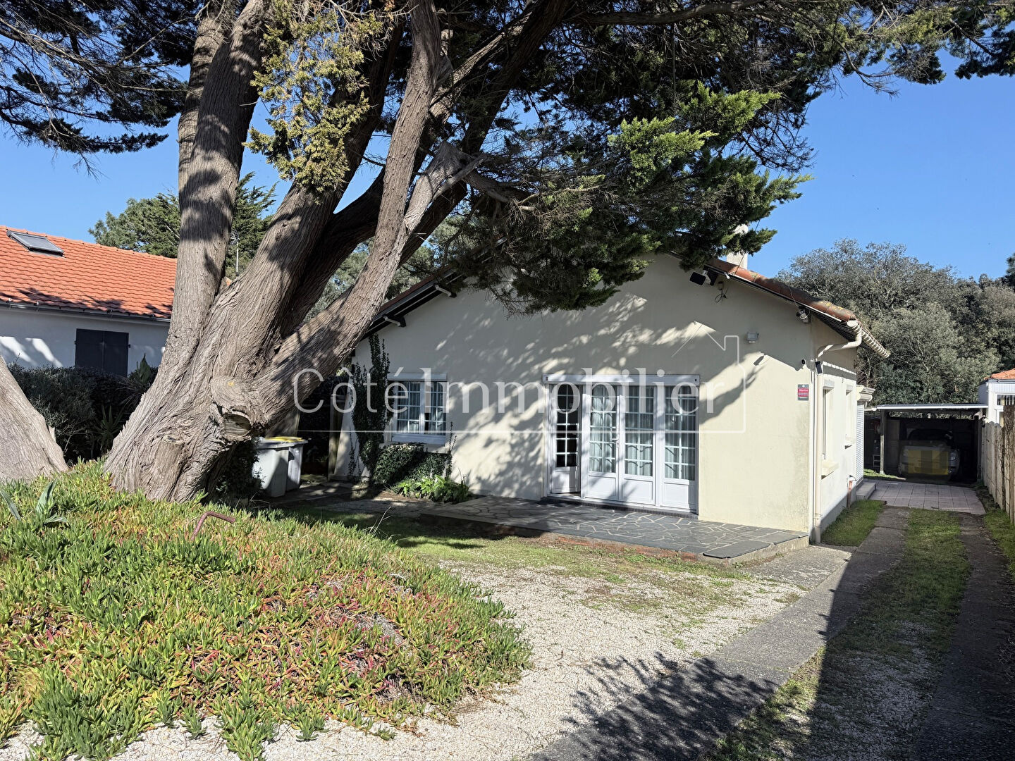 Agence Côté Immobilier de SAINT BREVIN L'OCEANFACE MER- SAINT BREVIN LES PINSEmplacement privilégié avec accès direct à la mer, et à 700 m des commerces.Maison d'environ 89 m² habitables (120 m² au sol) comprenant une véranda d'entrée, cuisine ouverte aménagée et équipée, salon séjour cheminée avec insert, 2 chambres avec rangement, une salle d'eau et un WC séparé.Sous combles : Une grande chambre et une autre pièce de stockage aménageable.Grand garage et jardin clos d'environ 520 m².Les + : chauffage gaz de ville (chaudière 2023), huisseries PVC double vitrage, volets roulants électriques.Emplacement exceptionnel, calme et recherchéIdéal résidence principale ou secondaire .Bien rare, à visiter rapidement.Demander Corine au 06.70.45.39.20Agence Côté Immobilier4 allée de la tour carrée 44250 St Brevin L'Océan02.40.27.47.80 (4.48 % d'honoraires TTC à la charge de l'acquéreur.) Corine LEDARD (EI) Agent Commercial - Numéro RSAC : 409301066 - st nazaire.