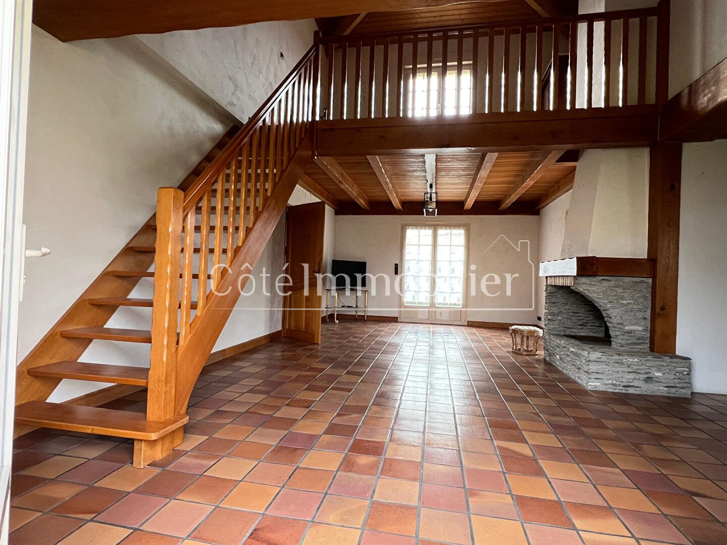 COTE IMMOBILIER PORNIC- Située dans un quartier résidentiel recherché, à proximité des commerces, maison implantée sur une belle parcelle d'environ 988 m².Elle offre une entrée ouvrant sur une agréable pièce de vie avec cuisine aménagée et équipée, ainsi qu'un salon chaleureux agrémenté d'une cheminée.Un dégagement dessert deux chambres, l'une avec salle d'eau et l'autre avec salle de bains, ainsi que des WC indépendants.Une grande mezzanine surplombant le salon complète l'ensemble et peut faire office de bureau ou de chambre d'appoint.Grand garage double, avec belle hauteur sous plafond, pouvant accueilir un camping car, espace chaufferie avec buanderie.DPE EN COURSCOTE IMMOBILIER PORNIC9 rue de Verdun44210 PORNIC02 40 82 06 65www.cote-immobilier.com (4.49 % d'honoraires TTC à la charge de l'acquéreur.)